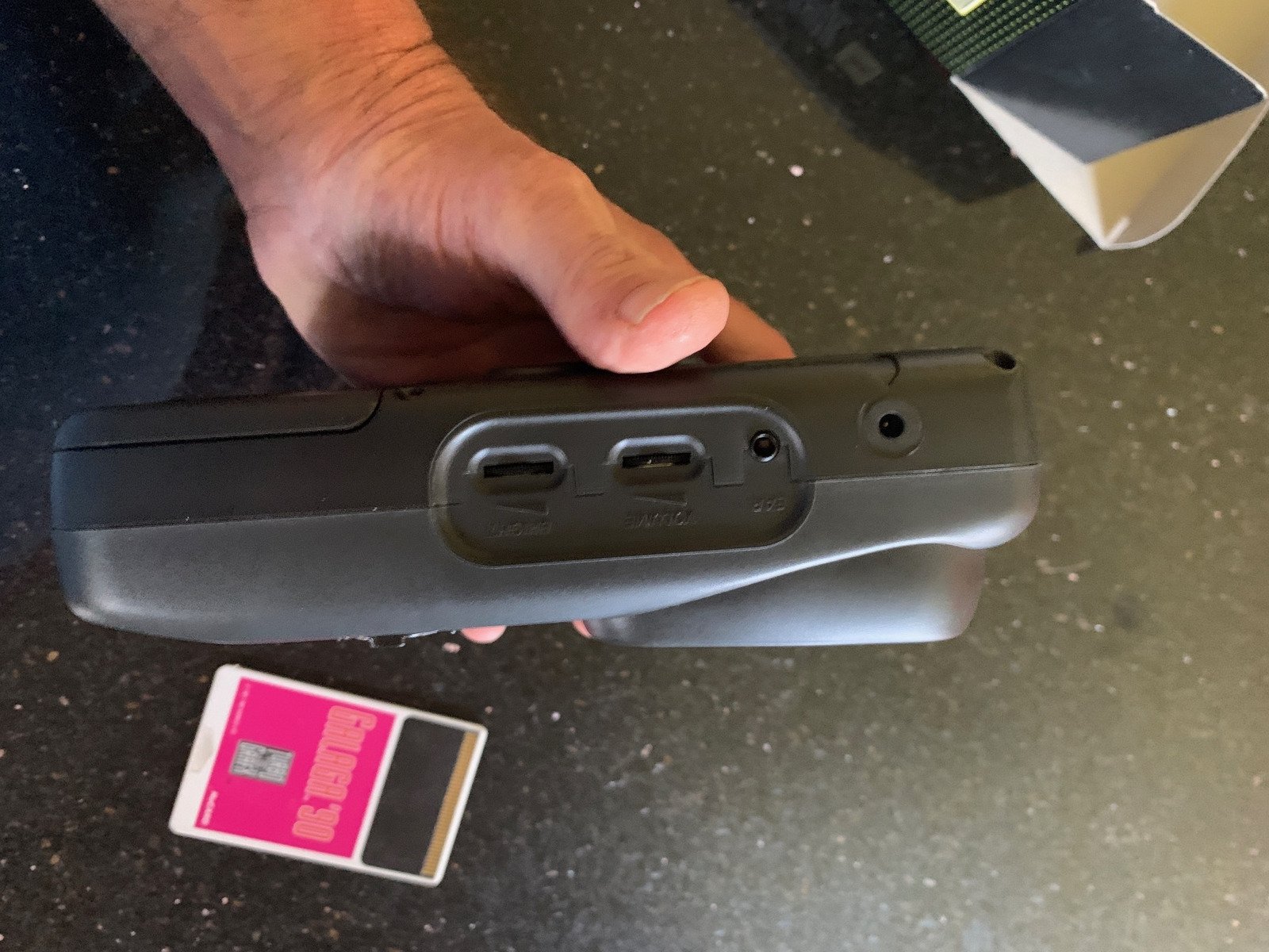 This unit is in extremely mint condition with an excellent screen, sound, and screen brightness. It includes all original packaging: box, foam, manuals, packing material, unopened wrist strap, and six recently added AA batteries. Even the original receipt from Toys R Us is included. Note that the barcode was cut off the box, as shown in the photos, but everything else is in SUPER MINT condition.